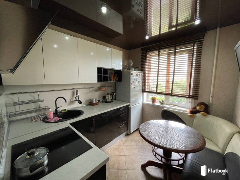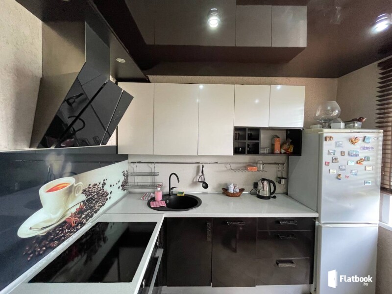 Полностью оборудованная кухня: холодильник, плита. духовка, микроволновка, электрический чайник, небольшой набор посуды.
