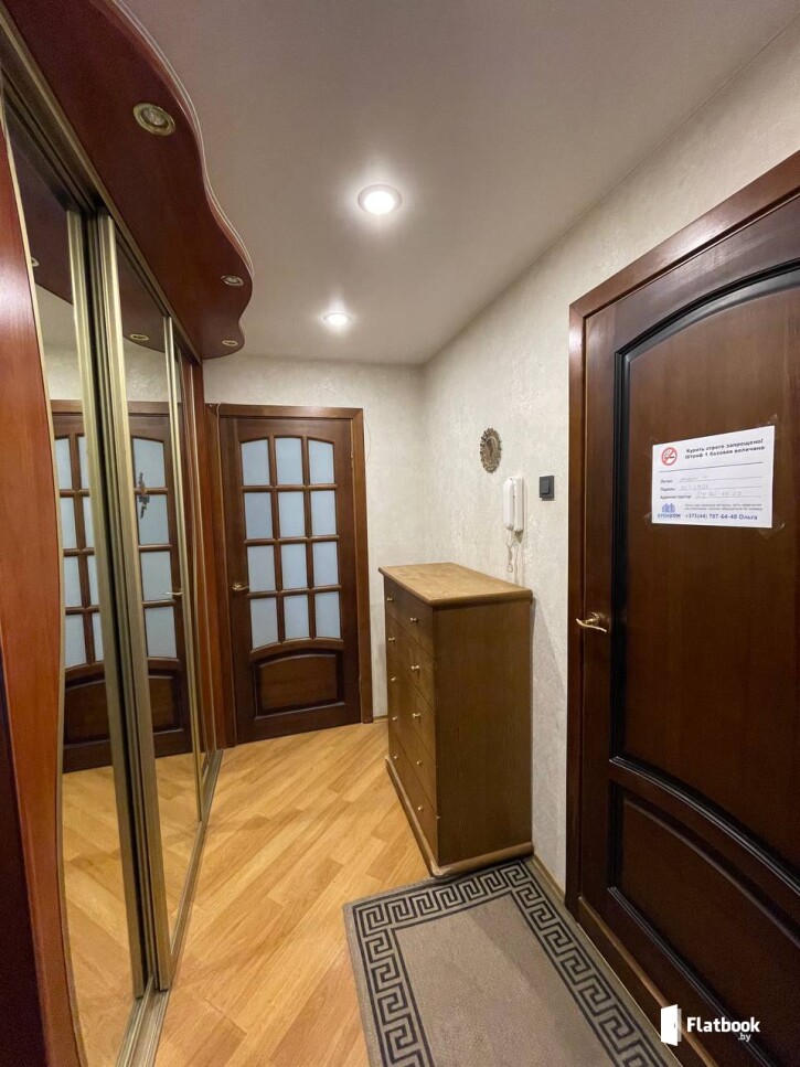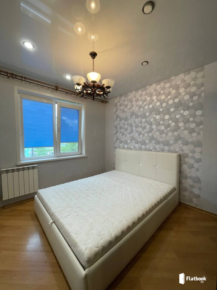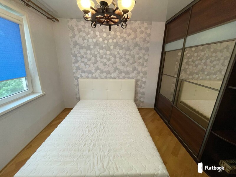 В спальне есть двуспальная кровать с только что купленными матрасами, вешалка.